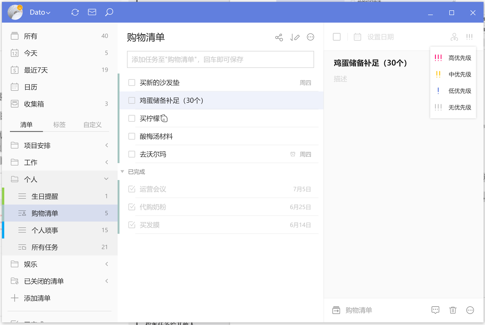 也可以使用全局快捷鍵 Ctrl+Shift+A 調(diào)出快捷添加任務窗口,輸入任務,然后回車添加。