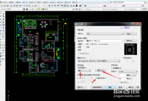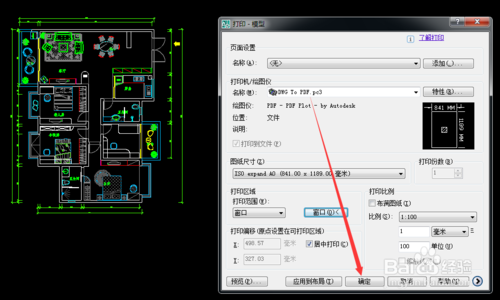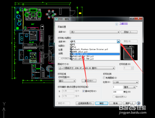 7、可以看到要選擇打印的范圍,選擇-平面布置圖。