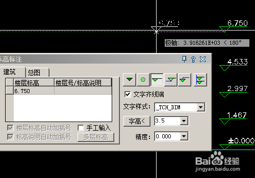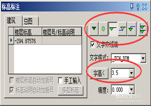 2、在彈出的標高標注中選擇標高標注的樣式,設置自高等。