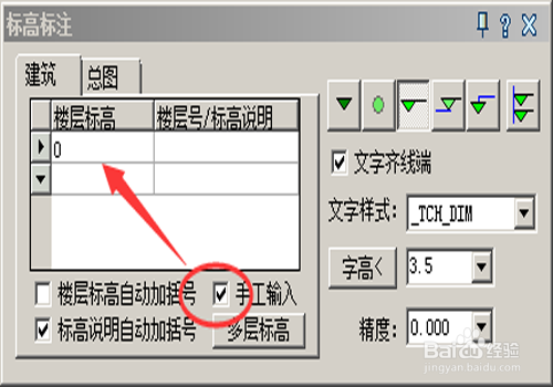 點擊手工輸入,然后點擊樓層標高中輸入0。