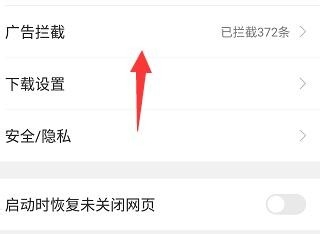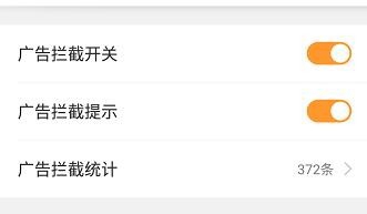 進(jìn)入設(shè)置界面以后,我們會(huì)看到上面顯示的有一個(gè)廣告攔截的,如果已經(jīng)開(kāi)啟了,就像界面顯示的那樣,已經(jīng)攔截了多少條了。