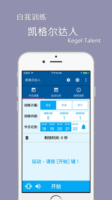 初學(xué)者可以使用凱格爾達(dá)人APP預(yù)設(shè)的訓(xùn)練內(nèi)容來(lái)練習(xí)。一旦你的骨盆底肌肉達(dá)到足夠的強(qiáng)度,您可以調(diào)整訓(xùn)練計(jì)畫(huà)內(nèi)容來(lái)得到更大的鍛煉。