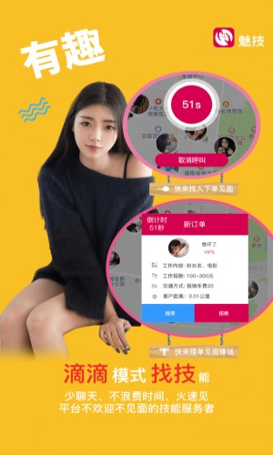 魅技app是一款附近人見面的技能、知識(shí)、經(jīng)驗(yàn)分享軟件。用戶在魅技app上根據(jù)的個(gè)人需求,直接向附近人下單,立馬約見附近人解決自身需求的即時(shí)技能求助軟件;有技能、知識(shí)、經(jīng)驗(yàn)的附近人,通過軟件發(fā)布技能、經(jīng)驗(yàn)、知識(shí),即時(shí)接單出面提供技能即時(shí)幫助附近人又得到相應(yīng)報(bào)酬的交易軟件。
