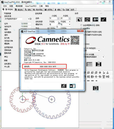 在本站下載好geartrax2016安裝包將其解壓好,然后雙擊運行里面的“.exe”文件,軟件打開后,復(fù)制它生成的序列號。(注意:安裝geartrax2016之前一定要先安裝Solidworks才能使用)