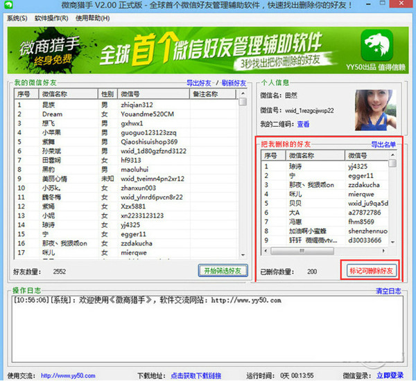 微信獵手軟件在找出把你刪除的好友之后,它不會立馬就刪掉她們,而是把她們標(biāo)記出來,讓用戶自己手動審核刪除,這一點(diǎn)充分避免了軟件誤刪的可能性。