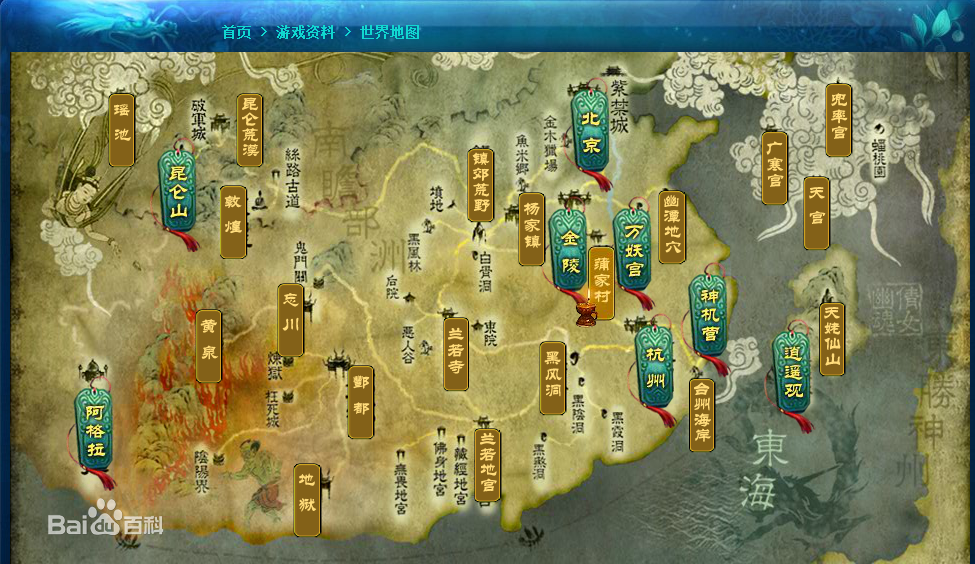穴、天姥仙山、楊家鎮(zhèn)、鎮(zhèn)郊荒野、絲路古道、墳地、黑風(fēng)林、白骨洞、蘭若寺、惡人谷、黑風(fēng)洞、黑陰洞、黑霞洞、蘭若地宮、黑煞洞、藏經(jīng)地宮、無畏地宮、忘川、佛身地宮、鬼門關(guān)、黃泉、煉獄、酆都、陰陽界、枉死城、地獄、天宮、瑤池、蟠桃園、兜率宮等場景,以上場景中玩家之間可PK。