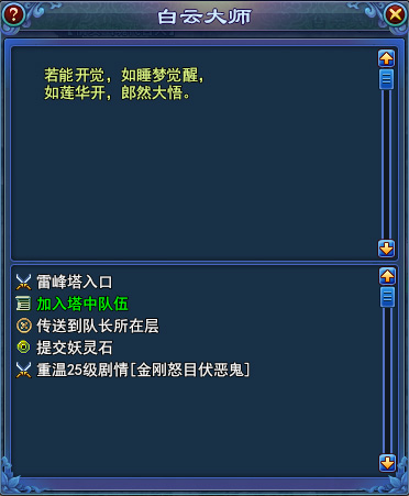 護送任務(wù):在雷峰塔內(nèi)指定層按要求將指定的需護送的目標護送至白云大師化身處。