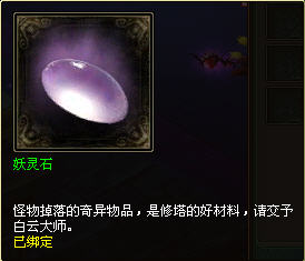 斬妖除魔:向蕪溟提交一顆妖靈石。打死雷峰塔內(nèi)的BOSS級怪物,就有幾率掉落妖靈石。