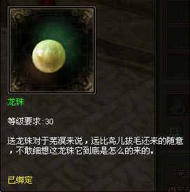 完成蕪溟提供的各種任務(wù),將獎勵靈獸經(jīng)驗,功德值,且有一定的幾率獲得龍珠獎勵。玩家可在蕪溟處用龍珠兌換其他獎勵。