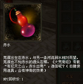 赤水:一顆龍珠可兌換3瓶赤水,使用赤水后可隨機獲得buff。