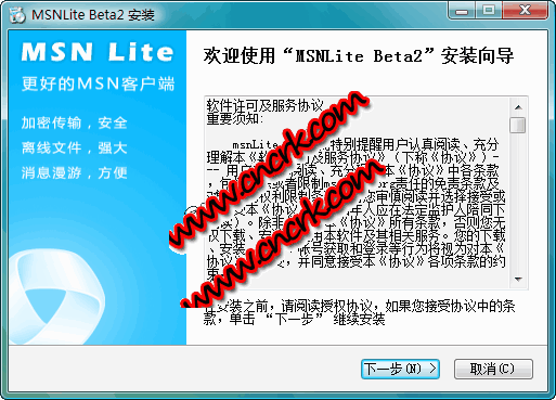 針對msn易用性差,信息隱秘性差等不足,msnlite對聊天進行雙向非對稱加密(雙方須都安裝本客戶端),對本地和保存于網絡的聊天記錄進行加密。