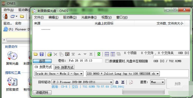 ones刻錄軟件怎么用?1、放入空白光盤(pán)一張,打開(kāi)ones軟件,看到這樣的界面
