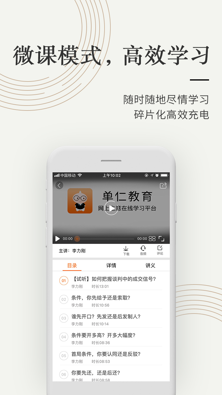 一、 課程與介紹1、 我們在線app可對課程評論,查看講義;
