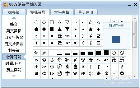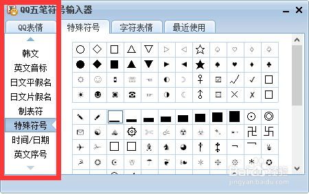 一些生僻的符號(hào)可以使用QQ五筆輸入法進(jìn)行輸入。如圖: