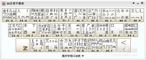 如果忘了某個(gè)字的五筆碼,在QQ五筆輸入法中有”字根表“,在設(shè)置中,可以調(diào)出來,然后在表中尋找。
