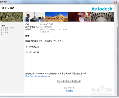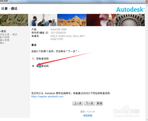 6、按下圖選擇,輸入激活碼,點擊下一步。