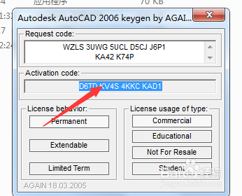 4、把上面的復(fù)制的字母填到注冊機的上面空白格,之后會出現(xiàn)一盤字母,紅色箭頭指向,復(fù)制