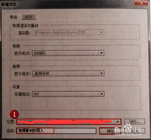 選擇【常規(guī)】,確?!疽曨l】的顯示格式為【時(shí)間碼】,【音頻】的顯示格式為【音頻采樣】,【采集】的格式為【DV】,接著選擇項(xiàng)目保存的位置并對(duì)項(xiàng)目進(jìn)行命名,然后單擊【確定】按鈕。保存的位置可以自行選擇