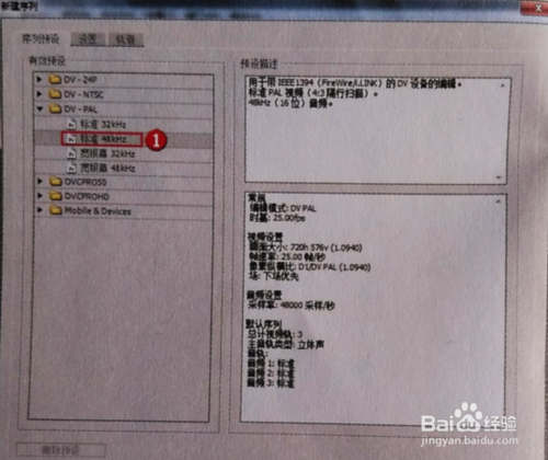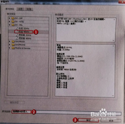打開(kāi)【新建序列】對(duì)話框,對(duì)序列進(jìn)行設(shè)置。單擊【序列預(yù)設(shè)】-【有效預(yù)設(shè)】,選擇【DV-PAL】目錄下的【標(biāo)準(zhǔn)48kHz】