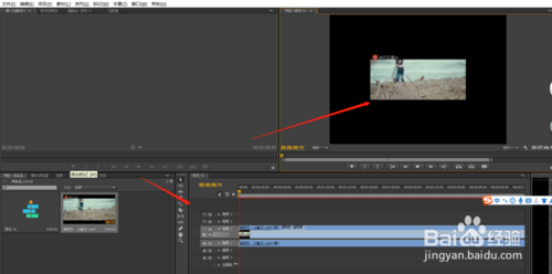將添加的視頻素材,用鼠標(biāo)拖動(dòng)到右下的編輯操作處,在右上方的視頻處點(diǎn)擊播放,即可查視頻信息;