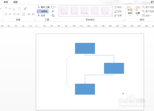 最方便的工具是上方的連接線按鈕,選擇連接線按鈕后可直接作出如圖的效果。如果對(duì)線條和框的顏色不喜歡,也可以自行調(diào)節(jié)就可以了。是不是好用的工具。