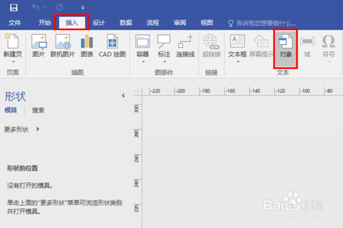第二步,首先將工具欄切換至【插入】操作界面,然后點(diǎn)擊【對(duì)象】,如下圖所示: