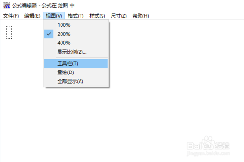 第四步,在上一步的操作下,系統(tǒng)會(huì)彈出公式編輯器,然后點(diǎn)擊菜單欄中的【視圖】,接著點(diǎn)擊【工具欄】,這樣方便我們編輯公式,如下圖所示:
