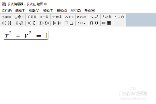 第五步,利用工具欄中的工具輸入自己要生成的公式(這里以x?+y?=1為例),如下圖所示: