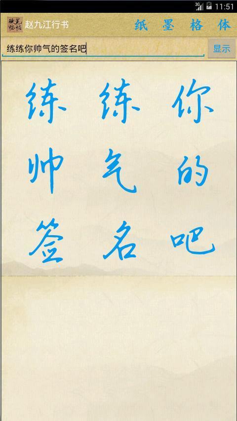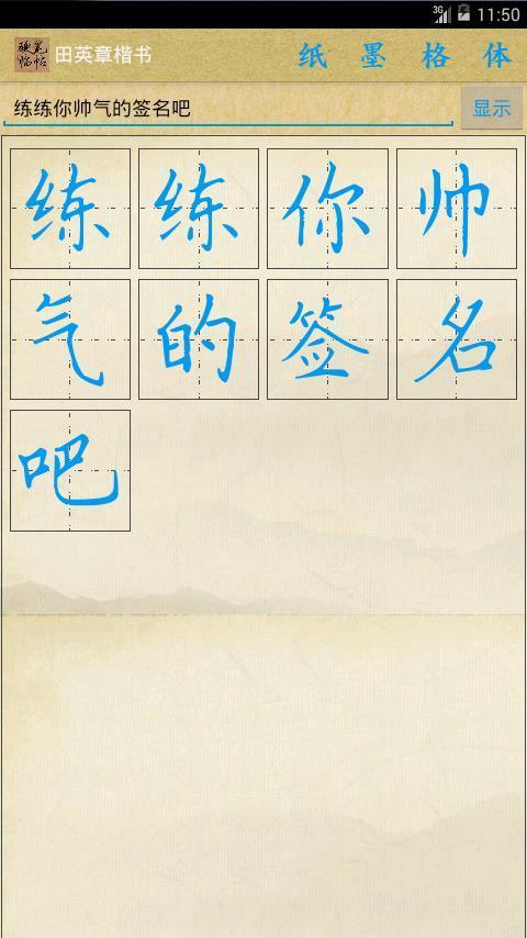 1.輸入自己需要練習的漢字、喜歡的字帖,文字會自動在田字格里顯示出來