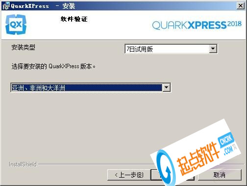 4、選擇安裝的QuarkXPress版本“亞洲、非洲和大洋洲”
