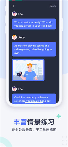 3、碎片時間練習口語:不會打亂學習工作節(jié)奏,每日只需10分鐘就能完成口語練習,輕松提高英語口語能力。