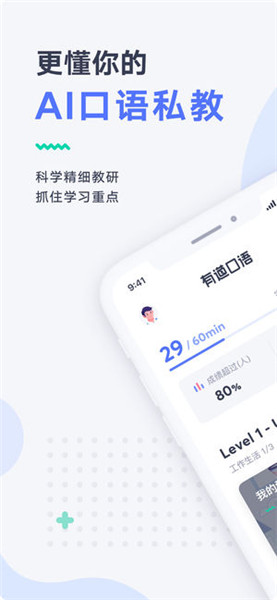 有道口語app是一個更懂你的AI口語私教,有道口語app結(jié)合大量研究驗證的語塊教學法+多感官教學法,幫助用戶飛速提高英語聽說能力,有道口語app統(tǒng)計了英語常用語料中的單詞、語法、場景,,證你學到的就是最好的,有道口語app致力于打造最好的口語!