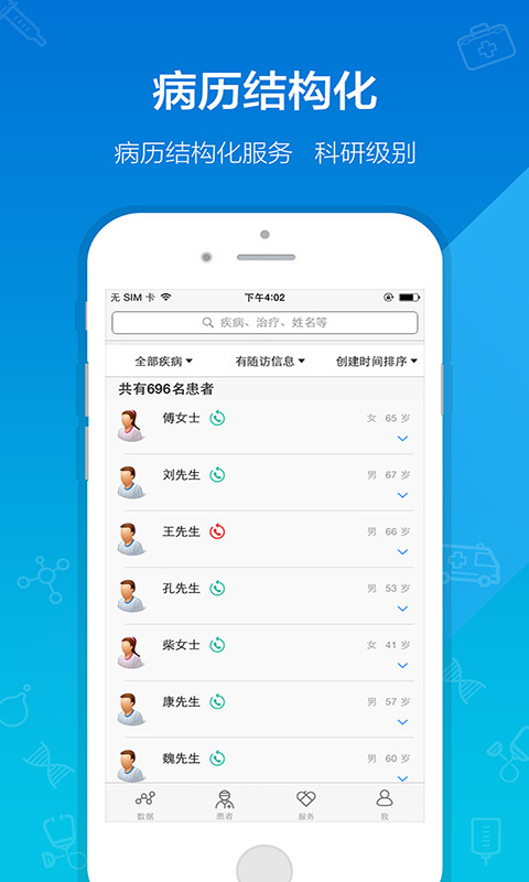 鄰客醫(yī)生是一款專為醫(yī)生服務(wù)的手機(jī)APP,鄰客醫(yī)生將醫(yī)生診治的患者病歷進(jìn)行數(shù)據(jù)結(jié)構(gòu)化處理,同時(shí)讓醫(yī)生與離院患者保持良好在線溝通,并定期追蹤離院患者的治療及康復(fù)信息,實(shí)時(shí)記錄呈現(xiàn)給醫(yī)生使用。鄰客醫(yī)生的數(shù)據(jù)質(zhì)量已達(dá)到國(guó)際科研級(jí)別。鄰客醫(yī)生,與醫(yī)為鄰,以患為客,聯(lián)接患者的專屬醫(yī)生!