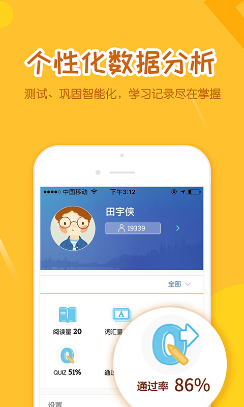原版語音磨聽力;朗讀評測練發(fā)音;閱讀繪本漲知識;讀后測驗(yàn)練思維。