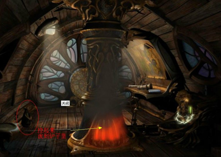 在地上找到Fidget的日記,在畫(huà)面右邊的花瓶旁找到火柴(match)。用火柴點(diǎn)燃火爐,被冷凍的門(mén)融化,點(diǎn)擊進(jìn)入下一個(gè)房間。