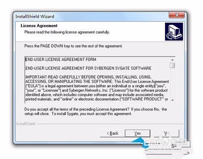 點(diǎn)擊“下一步”按鈕,出現(xiàn)如圖所示的許可證協(xié)議窗口,點(diǎn)擊“是”按鈕,接受協(xié)議,安裝繼續(xù)向下進(jìn)行