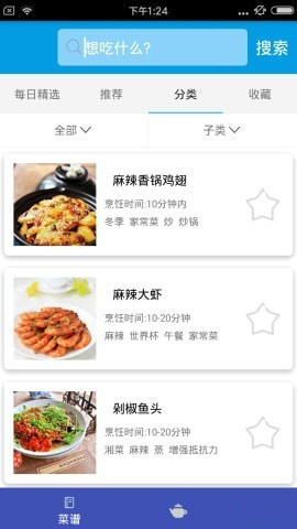 分類:嘻哈菜譜APP可以查詢所有類別下的菜譜。