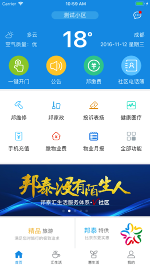 邦泰匯生活是由四川省邦泰集團(tuán)打造的智慧社區(qū)服務(wù)平臺。包含智能門禁、健康醫(yī)療服務(wù)、水電氣繳費(fèi)、交話費(fèi)、寬帶費(fèi)、交通罰款、報(bào)維修、報(bào)家政、活動報(bào)名、物業(yè)月報(bào)、公告、便民教程、健康課堂等功能,為廣大邦泰社區(qū)業(yè)主提供全方位的智慧物業(yè)服務(wù)。邦泰集團(tuán)是一家追求卓越、專注品質(zhì)和細(xì)節(jié)多元化發(fā)展的公司??偛孔溆诔啥际懈咝聟^(qū),總部設(shè)審計(jì)部、運(yùn)營部、人力行政中心、財(cái)務(wù)管理中心、營銷投資管理中心、設(shè)計(jì)管理中心、招采成本中心、工程管理中心等多個職能部門,集團(tuán)下轄雙流、樂山、眉山、宜賓、內(nèi)江、廣元、西昌等城市公司及四個專業(yè)子公司,業(yè)務(wù)領(lǐng)域涉及房地產(chǎn)開發(fā)、園林景觀建設(shè)、旅游商業(yè)運(yùn)營、物業(yè)服務(wù)及銷售代理五大板塊。
