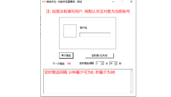萬商堂淘寶直播間推關(guān)注助手是為淘寶直播開發(fā)的一款小工具。支持單次推送關(guān)注、定時(shí)循環(huán)推送關(guān)注。如果未輸入要關(guān)注的名稱,可以點(diǎn)擊單次推送獲得與登陸帳號(hào)關(guān)聯(lián)的名稱。