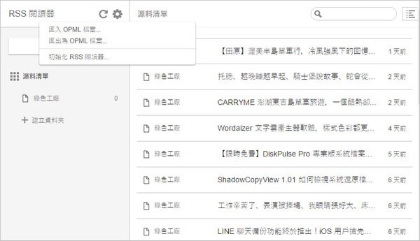 RSS訂閱感覺有被現(xiàn)在的網(wǎng)絡(luò)環(huán)境所遺忘,不過他也是每個(gè)網(wǎng)站不能缺乏的更新資訊,若是要掌握比較即時(shí)的資訊訂閱RSS絕對不能缺少,可以從既有的RSS訂閱中到處OPML文件,然后直接導(dǎo)入來使用。