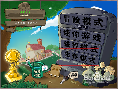 2、現(xiàn)在我們來(lái)打開植物大戰(zhàn)僵尸游戲,來(lái)試驗(yàn)一下這個(gè)修改器的功能。打開游戲之后我們以生存模式中的的游戲?yàn)槔?,?dāng)然其他的也是可以的。