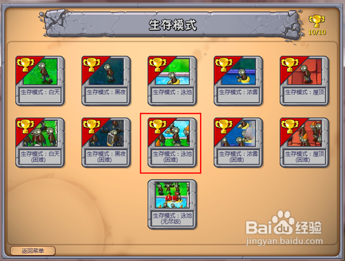 3、在生存模式中我們可以隨便選擇某一個(gè)游戲類型,比如選擇泳池模式,點(diǎn)擊一下這個(gè)模式即可。