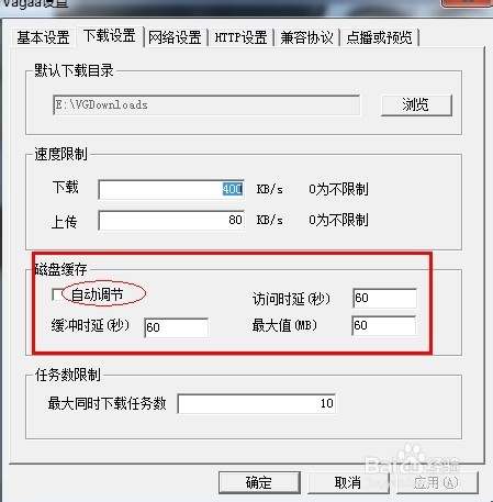 ---磁盤設置。 建議緩存設置大一點,像我這個就是拉到最大去了。也可以設置自動調(diào)節(jié),至于下載任務,建議不要設置太多了