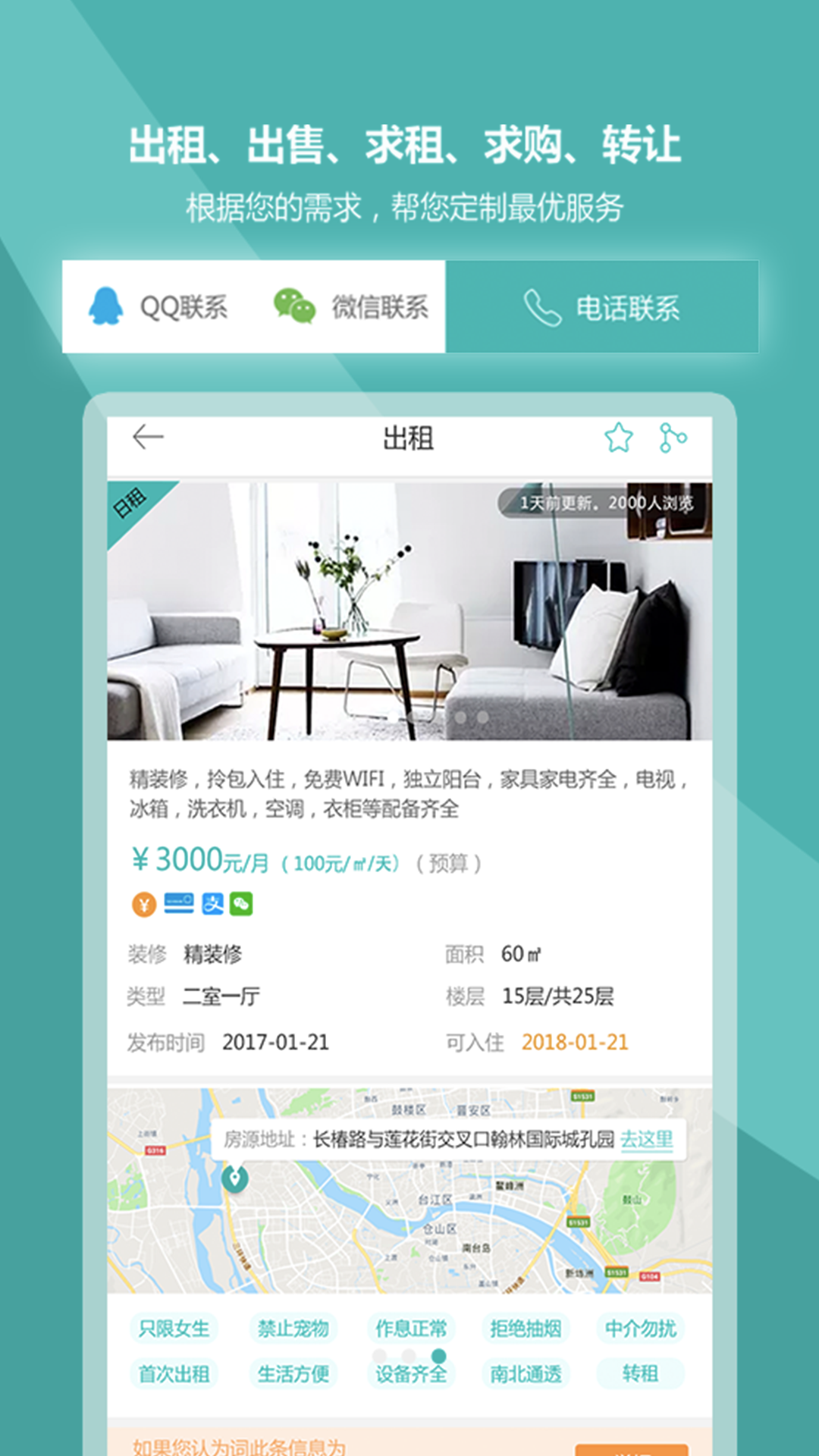 1. 出租、出售、求租、求購(gòu)、轉(zhuǎn)讓2. 整租、合租、日租、二手房、寫(xiě)字樓、商鋪、車(chē)位、廠房、倉(cāng)庫(kù)、土地