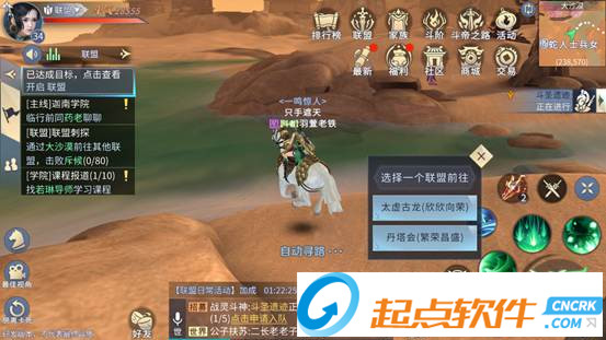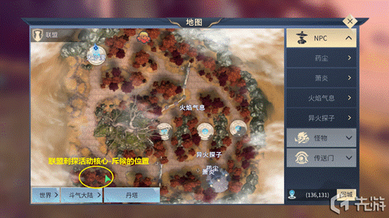 點擊參與后,會自動尋路,前往自己聯(lián)盟的所在地。與蕭炎談話后,接受蕭炎的委托,即可開始聯(lián)盟刺探任務(wù)。