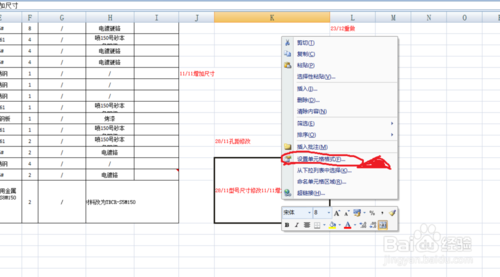 2、鼠標(biāo)點(diǎn)擊右鍵,如下圖,菜單中出現(xiàn)“設(shè)置單元格格式”選項(xiàng)。
