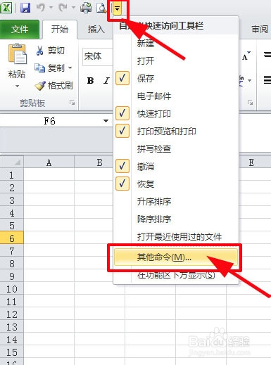 點(diǎn)擊“快速訪問(wèn)工具欄”的下三角按鈕,打開(kāi)下拉菜單,見(jiàn)下圖