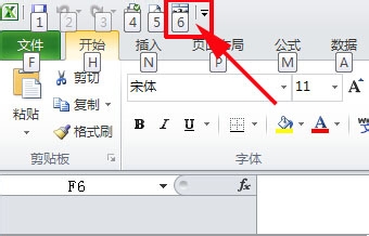 3、我們這時(shí)按一下Alt鍵,會(huì)發(fā)現(xiàn)“快速訪問(wèn)工具欄”中的“合并后居中”按鈕上會(huì)出現(xiàn)一個(gè)數(shù)字,我這兒是6