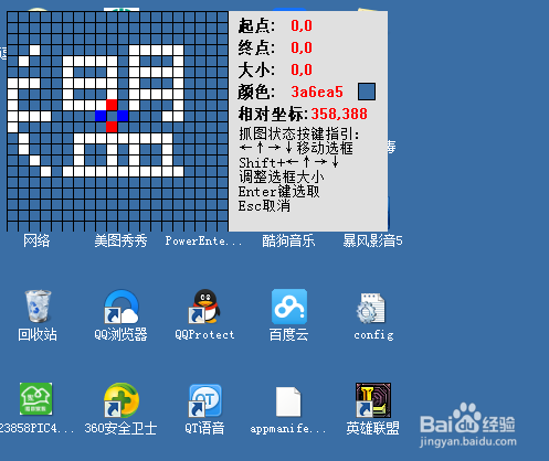 6、出現(xiàn)鼠標(biāo)提示時(shí),大漠綜合工具界面會(huì)自動(dòng)隱藏,這時(shí)鼠標(biāo)移動(dòng)到哪點(diǎn)坐標(biāo)都會(huì)顯示那一點(diǎn)的坐標(biāo)細(xì)節(jié)(包括顏色值和桌面坐標(biāo))如圖。