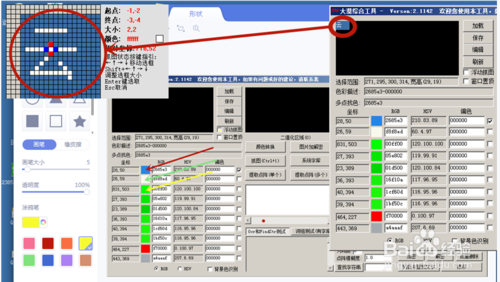 9、跟著就要鼠標(biāo)點(diǎn)擊一下圖上紅色箭頭所指的小色框(顏色不論)。點(diǎn)擊其他小色框效果是一樣,不過為了方便你的習(xí)慣和了解!因?yàn)槟阌昧诵∩蚝笥涗浀木湍泷R上點(diǎn)擊的坐標(biāo)點(diǎn)的顏色值和坐標(biāo)的記錄!